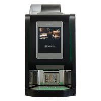 The wide touch screen and the user-friendly interface allow a high number of selections, flexible and customised recipes management, customers branding and promotional video management.