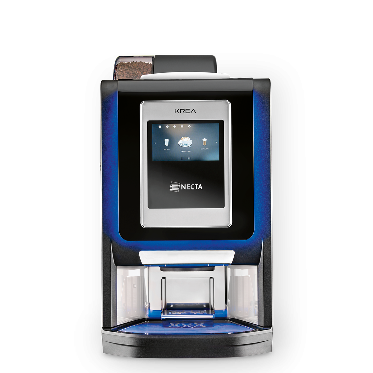 Just a touch, and anybody can get a high quality drink with Krea Touch. Appealing design, decorative light, chrome frames, shiny black surfaces and unrivalled performance make Krea Touch the ideal solution for your coffee break at the office.