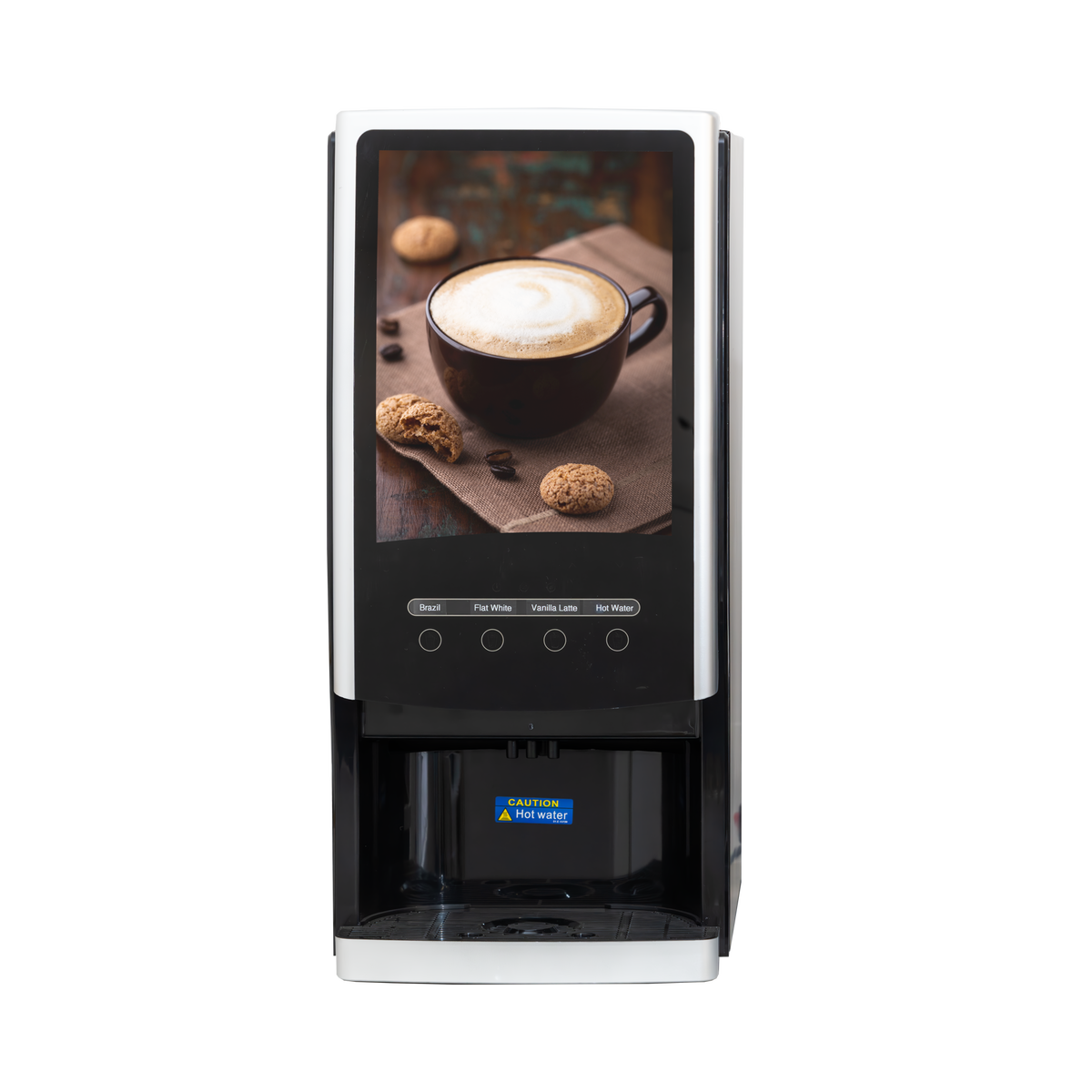 Quick Cafe 3 + 1 has a new modern look— touch buttons, and a lightbox. It features 3 pre-ground blends and a seperate hot water outlet for tea drinkers. Maintenance is even more simple now with a daily rinse button located on the front of the machine. The Quick Cafe 3 + 1 is our most cost-effective option at just 56 cents per cup!