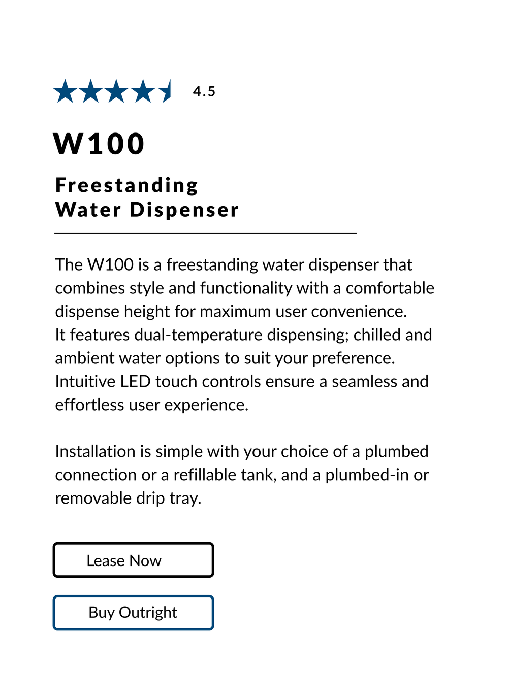 require no heavy lifting (unlike top loaded coolers). Tank-fed still offers full BRITA filtration and built-in UV LED sterilisation.